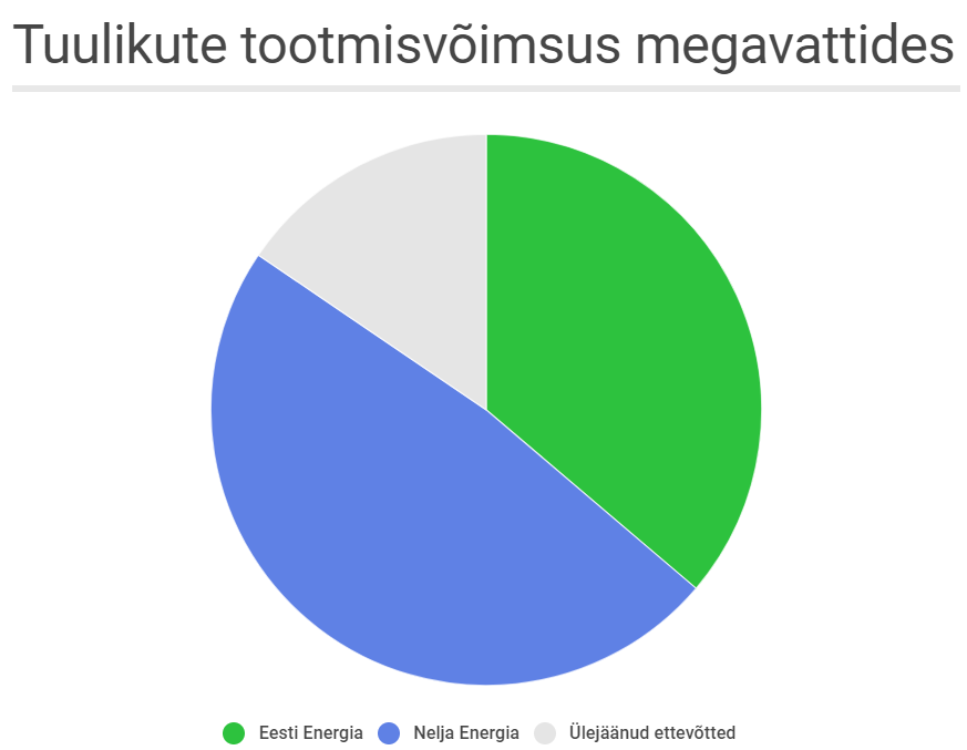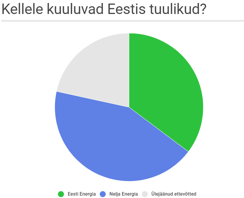 愛沙尼亞風電場的總功率約為310兆瓦。集中兩家大型能源公司將意味著一個全國風電壟斷,市場份額達到85%,而私營部門的統計數據僅保持統計。未來,Eesti Energia的可再生能源公司Enefit Green也將獲得全國風能補貼。