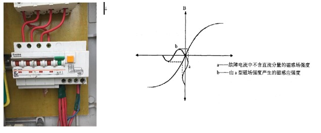 可以看到,如果交流負載發生絕緣損壞,產生的剩余電流不僅有交流成分,還有直流成分,如果按照慣性思維依然使用AC型漏電保護器在交流負載端進行漏電保護顯然是不行的,不僅無法檢測直流漏電,甚至疊加的直流漏電會導致檢測磁芯預先磁化,導致脫扣值增大,破壞剩余電流保護器的原有的保護功能!