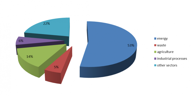 2013年人均溫室氣體排放量相對較低(約為6.9噸二氧化碳當量),而單位國內生產總值的排放量較高,從而得出的結論是,能源(主要來自燃煤火力發電廠)在創造能源方面效率低下。附加價值。因此,減少化石燃料的能源份額應與提高能源效率密切相關,特別是在工業部門。