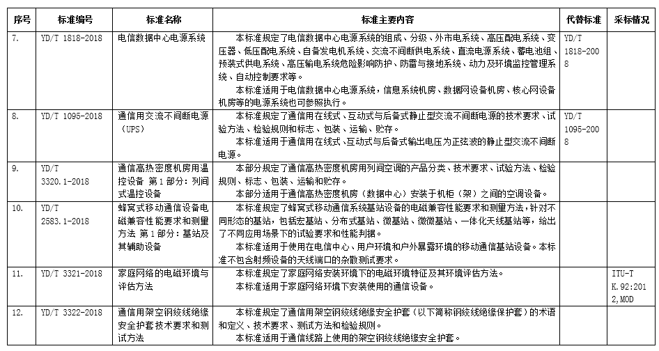 附件: 12項通信行業標準名稱及主要內容