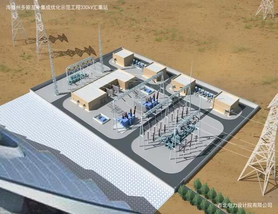 330千伏匯集站設330千伏、110千伏、35千伏三級電壓,實現與風電、光伏、光熱、儲能電站的連接。