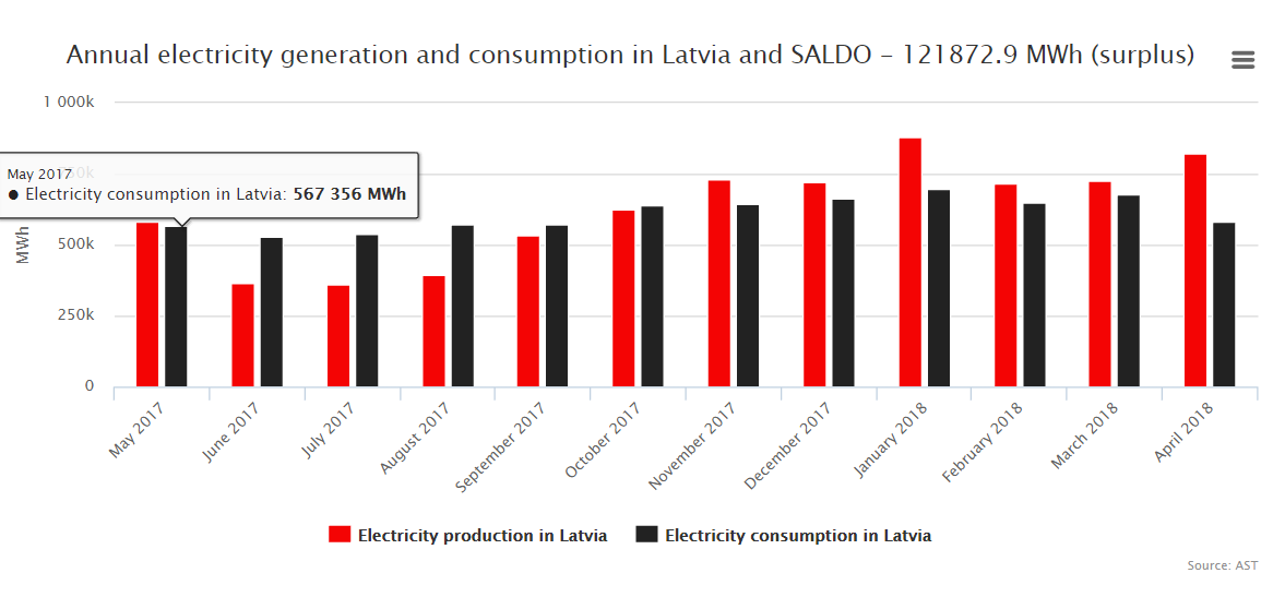 拉脫維亞的電力消費量為581403兆瓦時,拉脫維亞招標區域的北方電池平均價格下降至40,03歐元/兆瓦時,拉脫維亞消費當地發電量達到141%